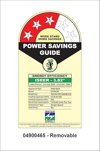 Energy Rating : 3 Star – Best in class efficiency | Annual Energy Consumption: 1039.62 Units Per Year| ISEER Value: 3.82 The star rating is as per BEE guidelines